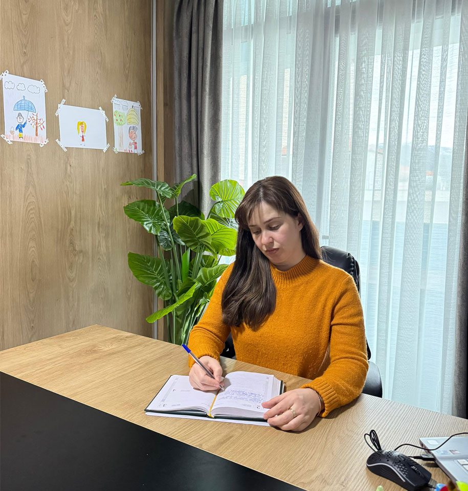 Aktualisht punon si vlerësuese dhe terapiste për fëmijë në kuadër të shërbimit Psikologjik.